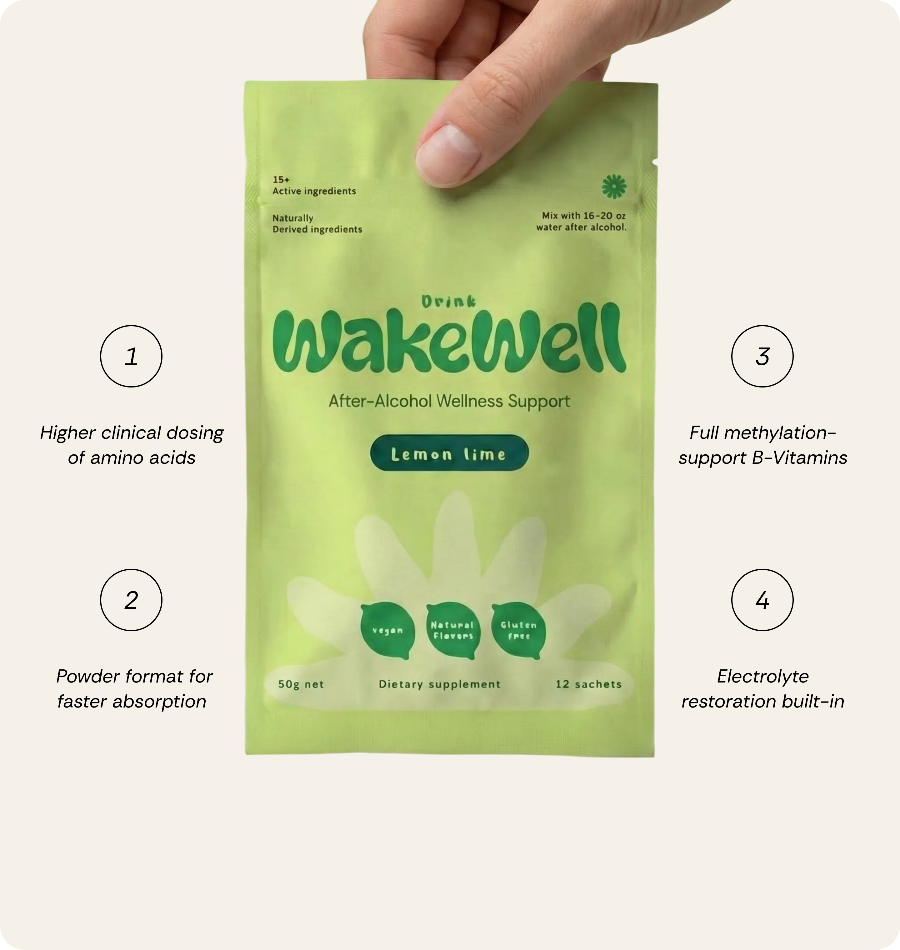 Most recovery products focus only on electrolytes. DrinkWakeWell takes a full-spectrum approach supporting liver function, gut integrity, cognitive clarity, and hydration in one clinically-informed formula.*